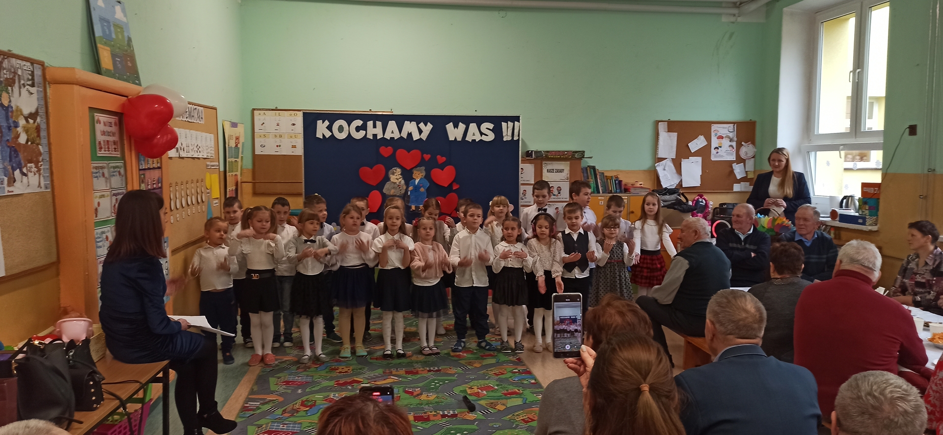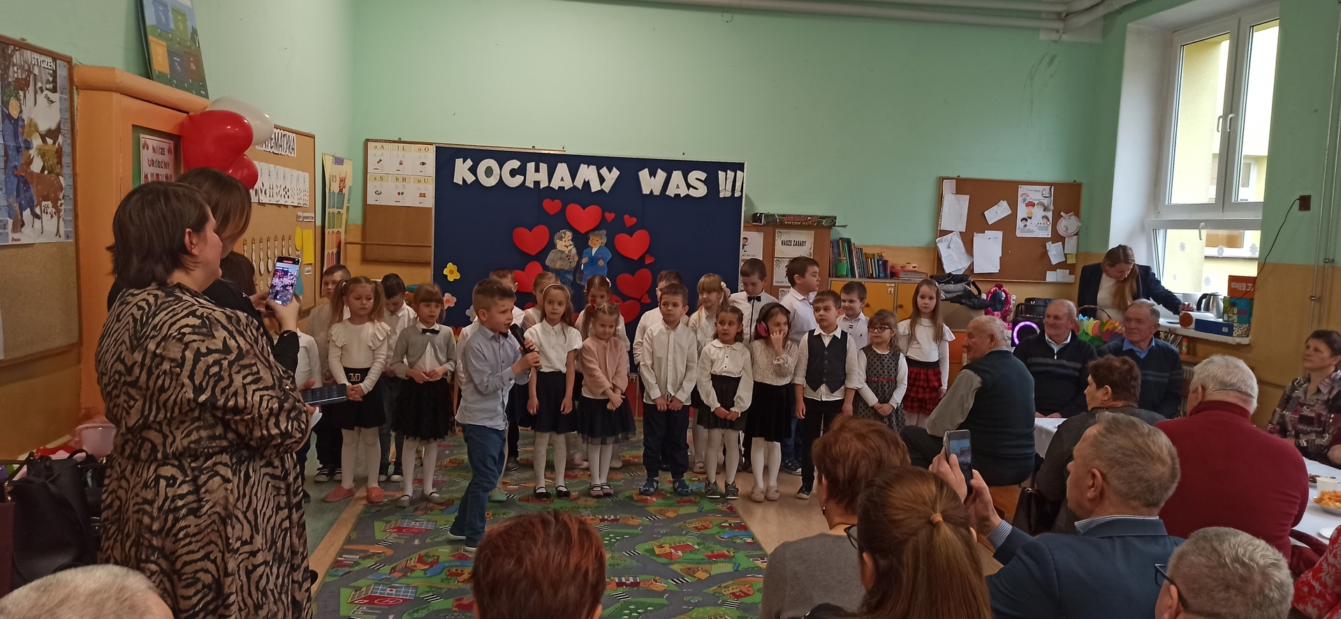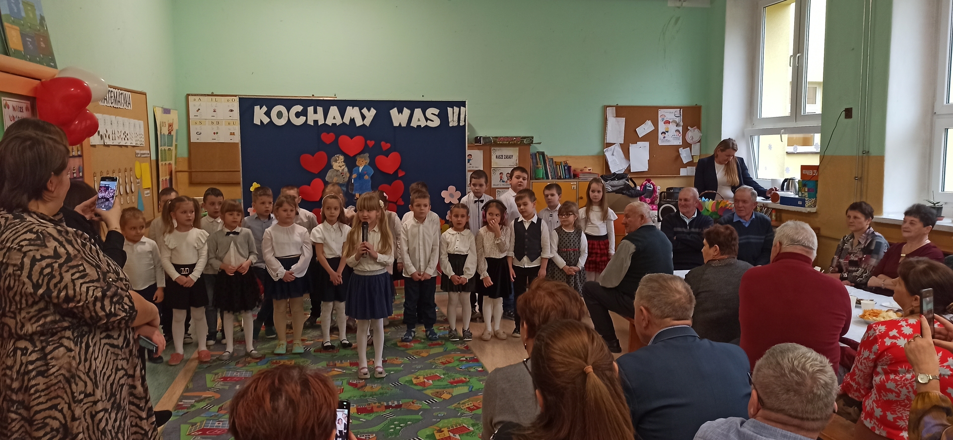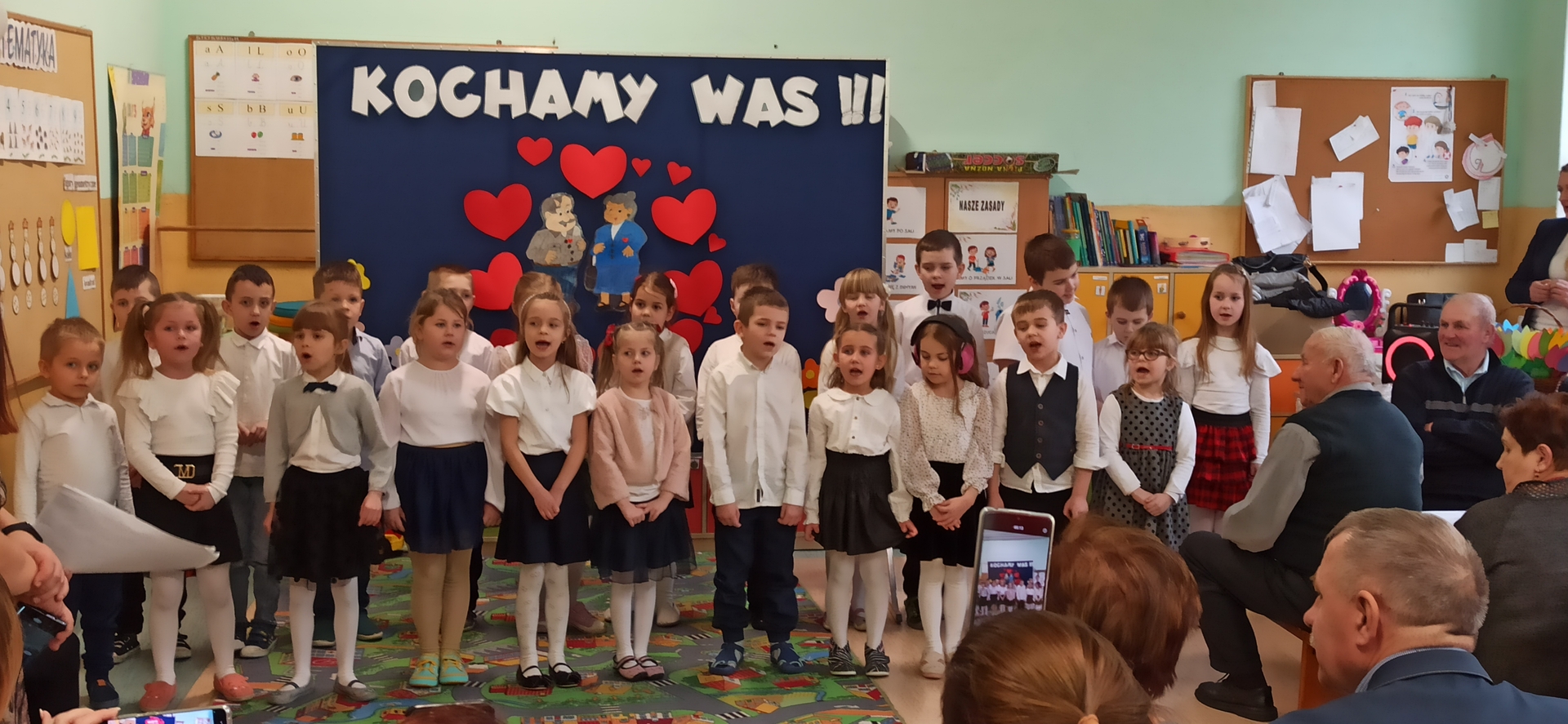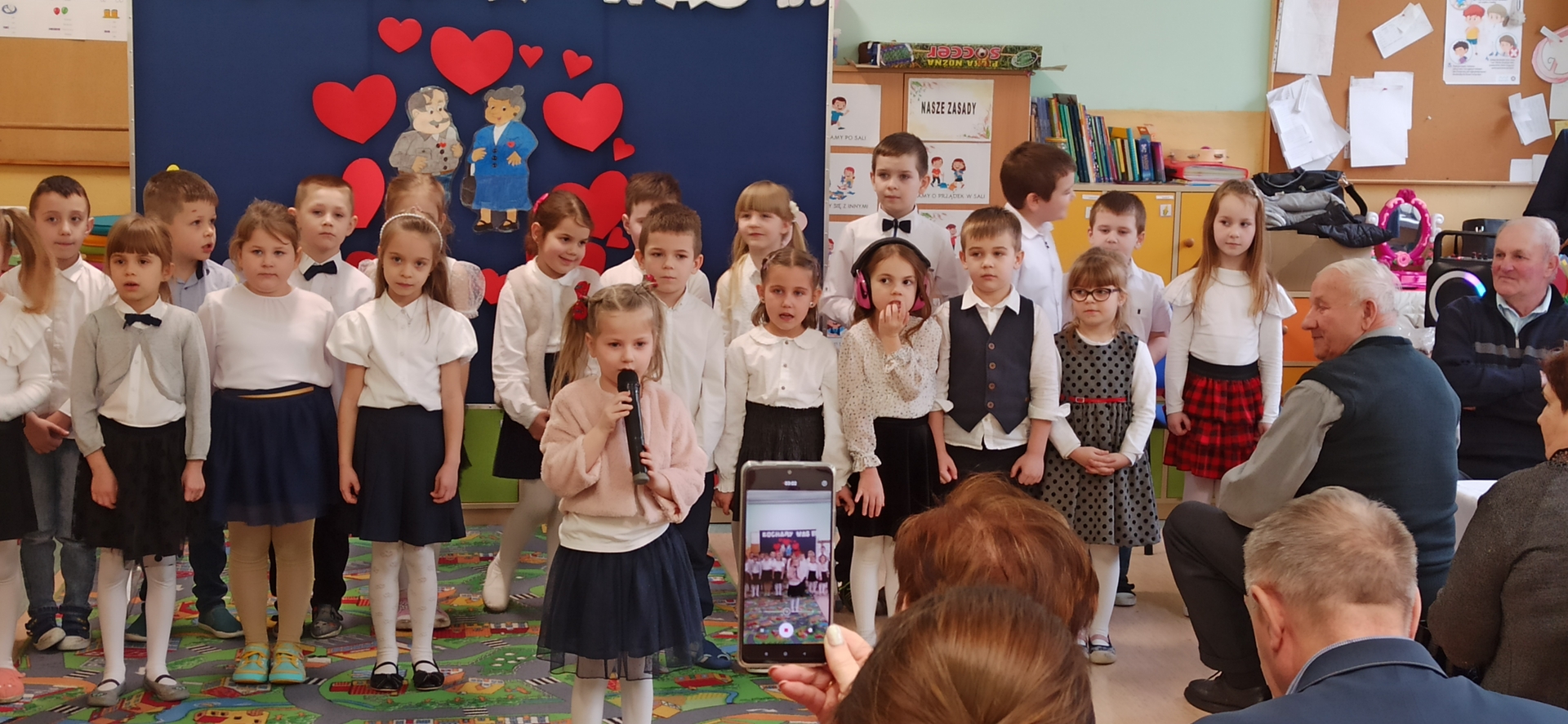 to słowa, które każdemu dziecku kojarzą się z ciepłem, miłością i wszystkim, co dobre. Dlatego 25 stycznia 2023 r. dzieci z zerówki gościły swoje Babcie oraz Dziadków na uroczystości z tej okazji. Od samego rana z niecierpliwością wyczekiwały zaproszonych gości. Dzieci zaprezentowały wiersze oraz piosenki. Po występie artystycznym na naszych gości czekał słodki poczęstunek przygotowany przez rodziców i upominki, aby w ten szczególny sposób okazać swoim bliskim szacunek i po raz kolejny podziękować im za miłość