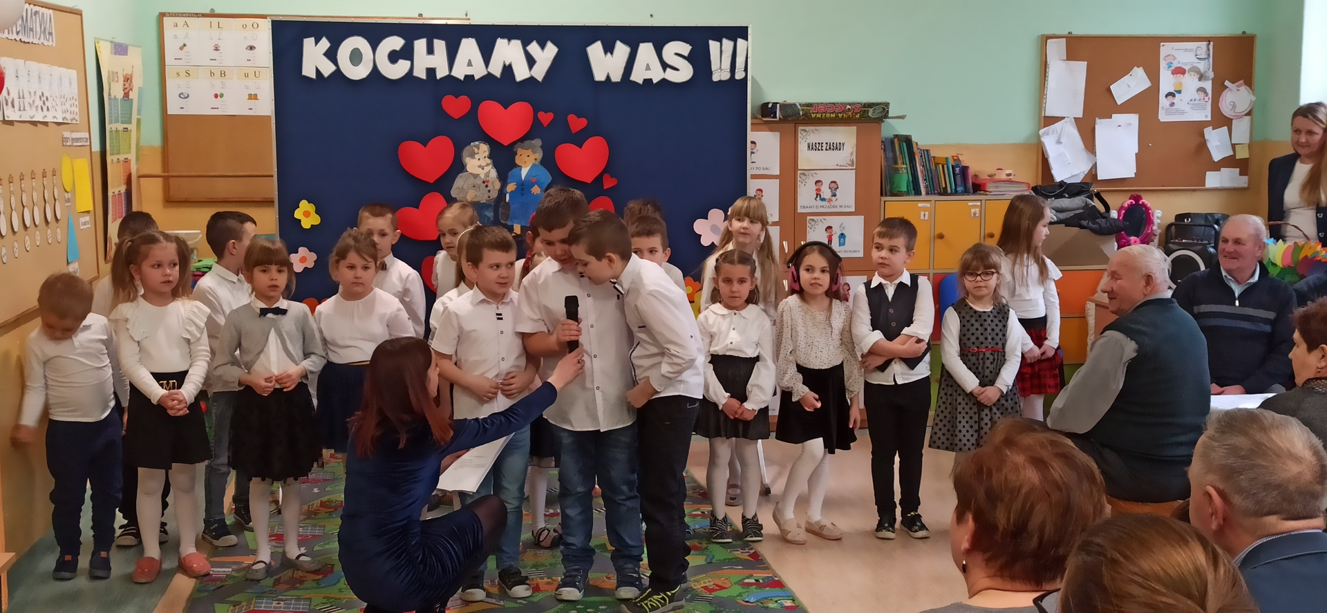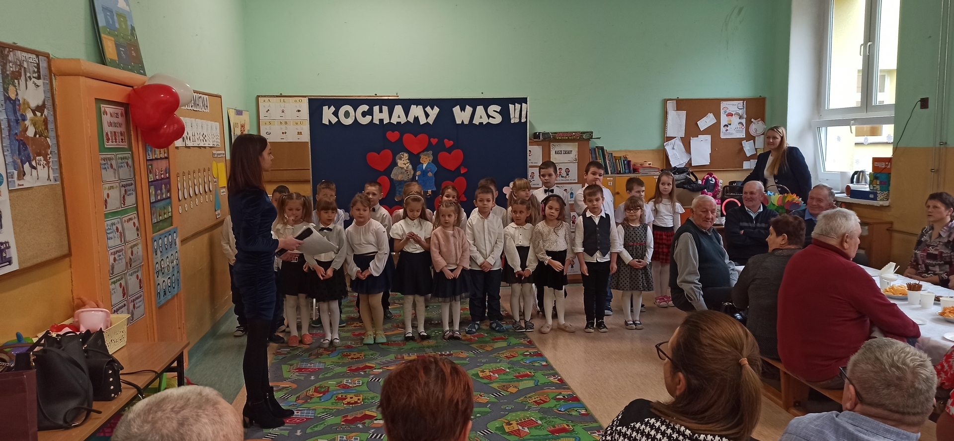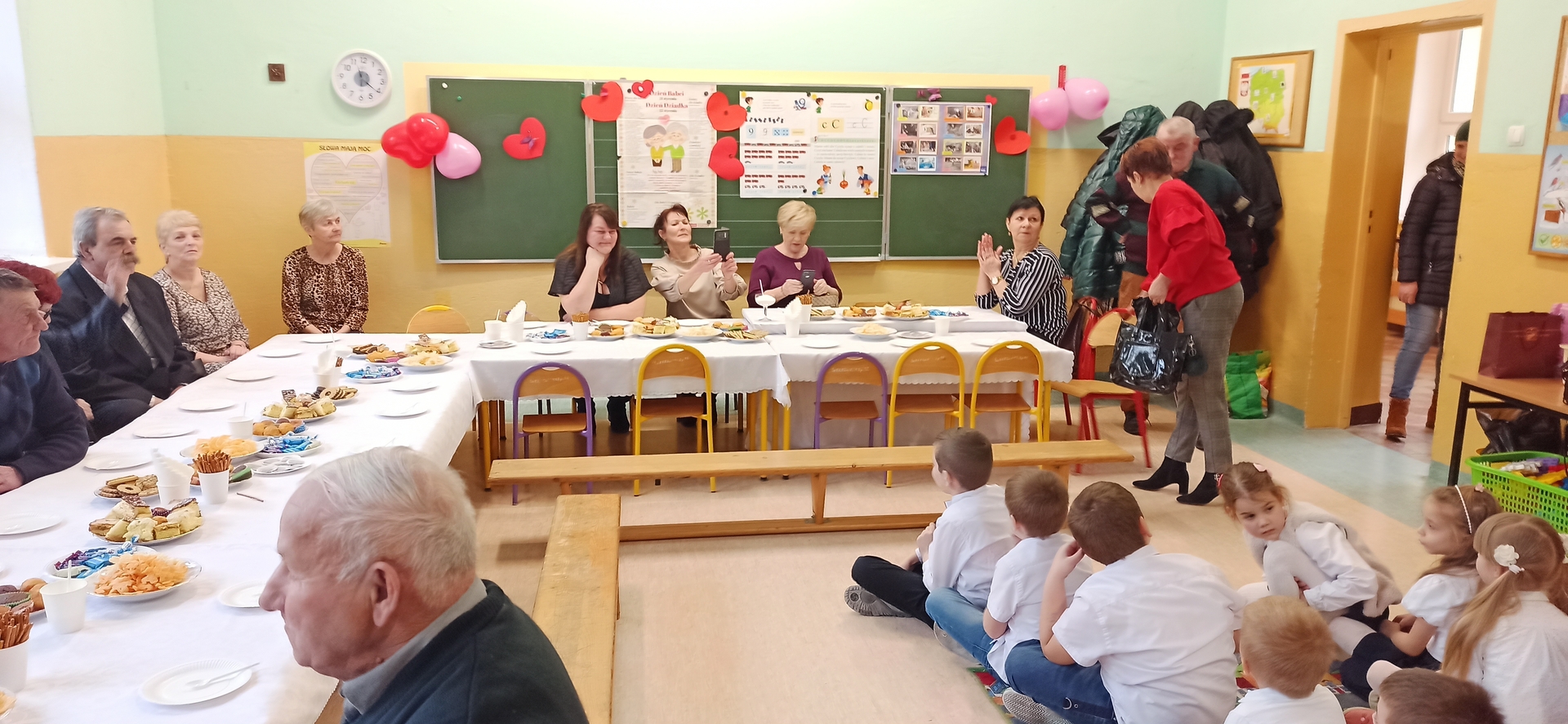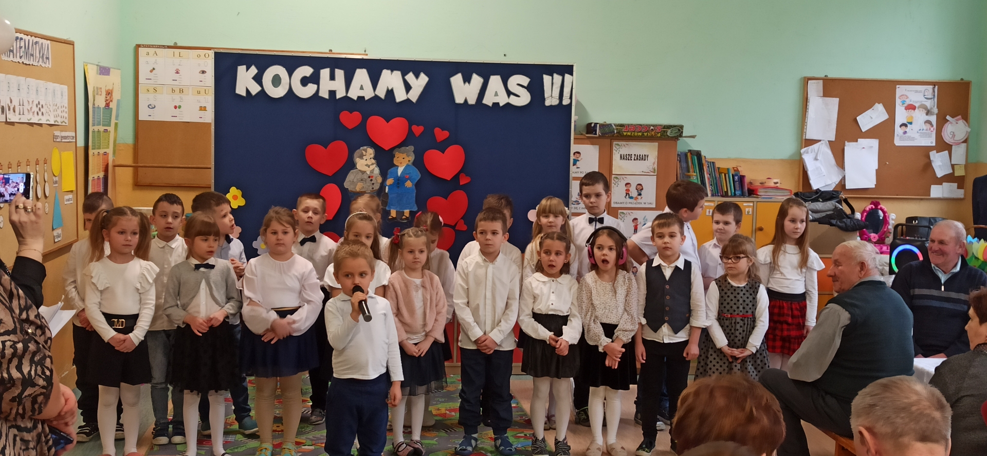 to słowa, które każdemu dziecku kojarzą się z ciepłem, miłością i wszystkim, co dobre. Dlatego 25 stycznia 2023 r. dzieci z zerówki gościły swoje Babcie oraz Dziadków na uroczystości z tej okazji. Od samego rana z niecierpliwością wyczekiwały zaproszonych gości. Dzieci zaprezentowały wiersze oraz piosenki. Po występie artystycznym na naszych gości czekał słodki poczęstunek przygotowany przez rodziców i upominki, aby w ten szczególny sposób okazać swoim bliskim szacunek i po raz kolejny podziękować im za miłość