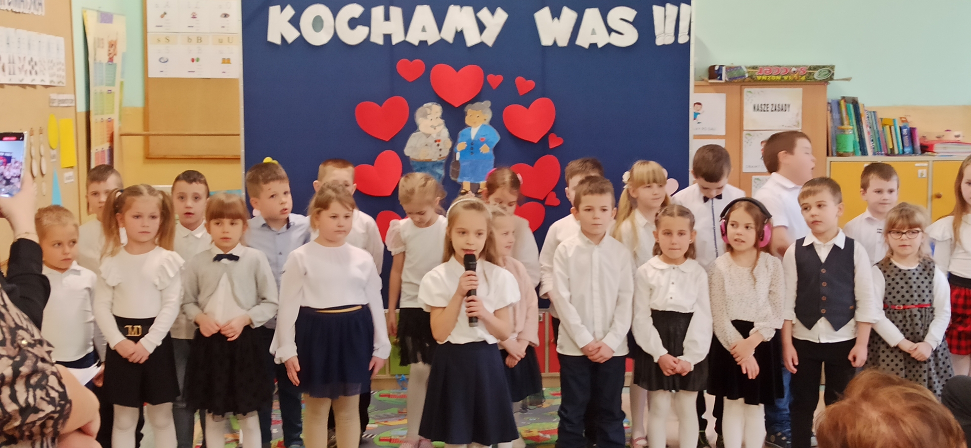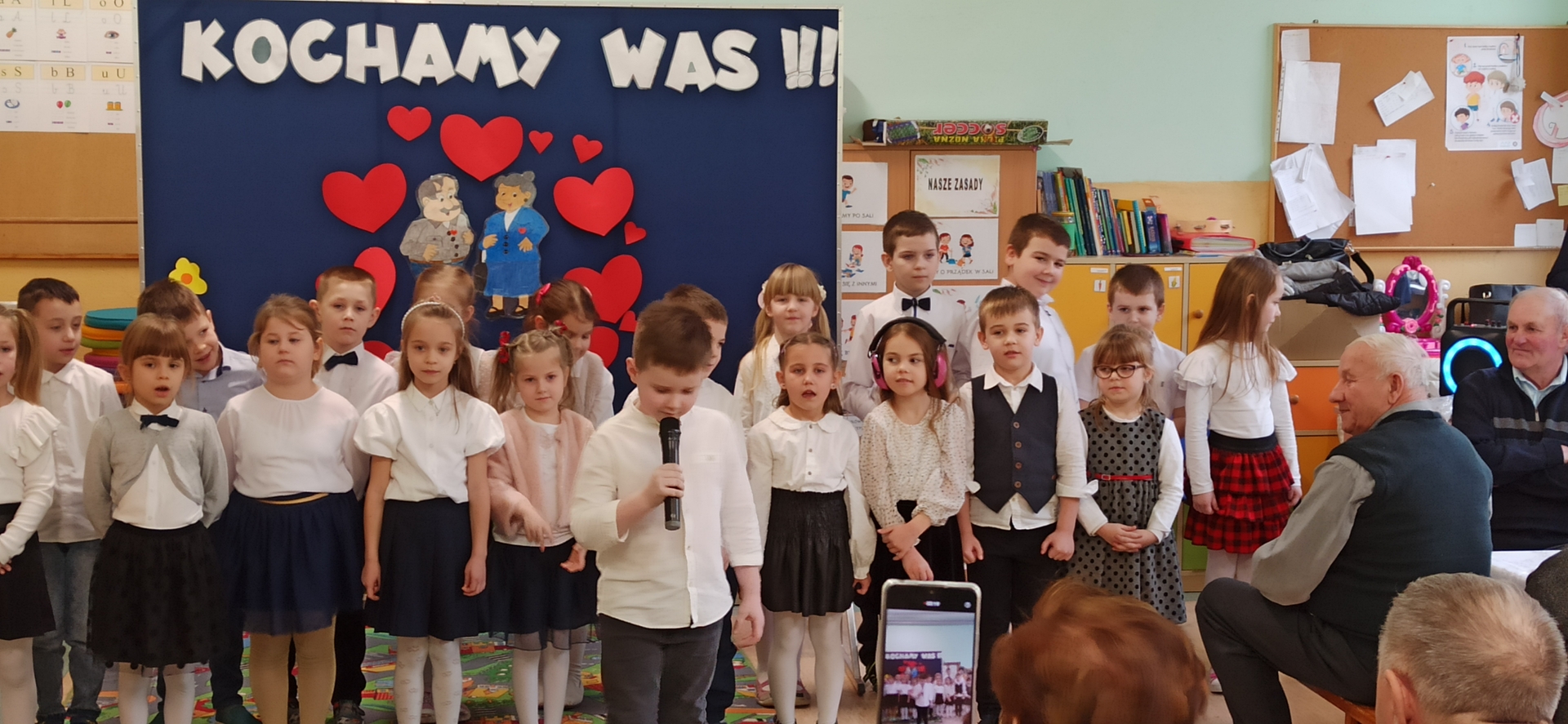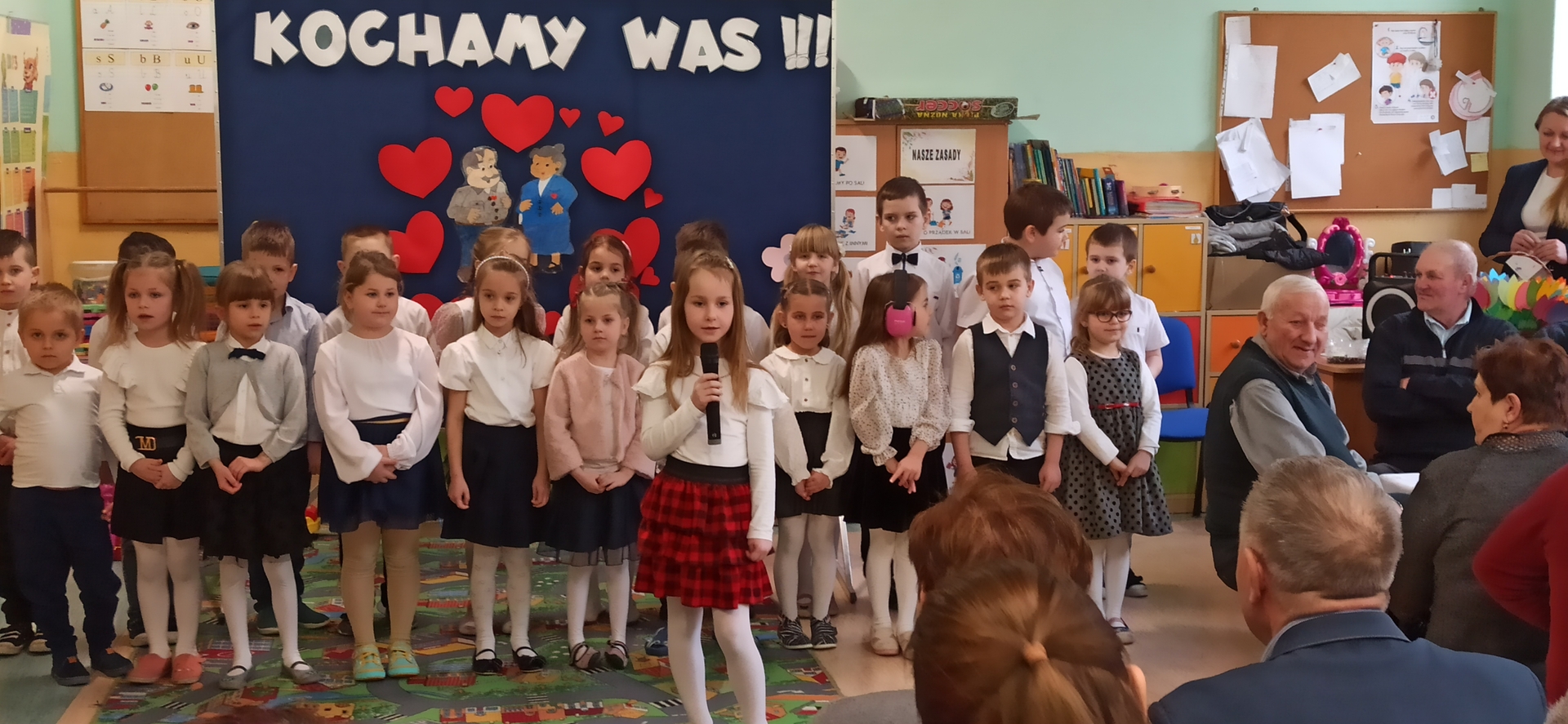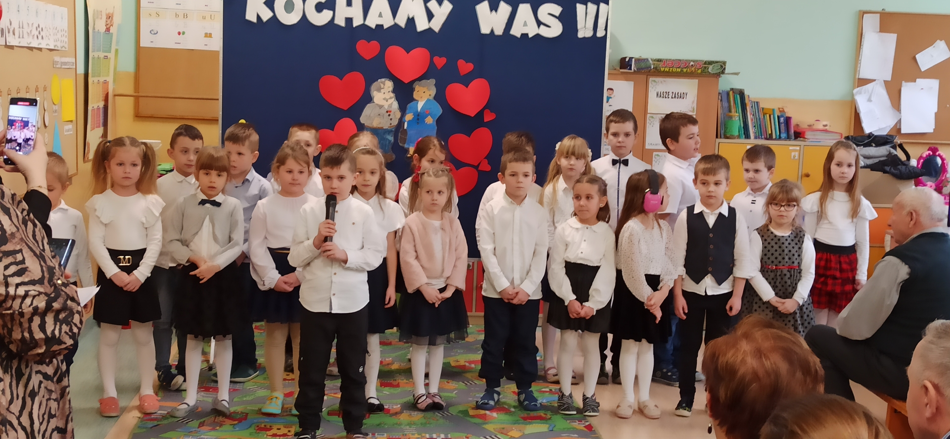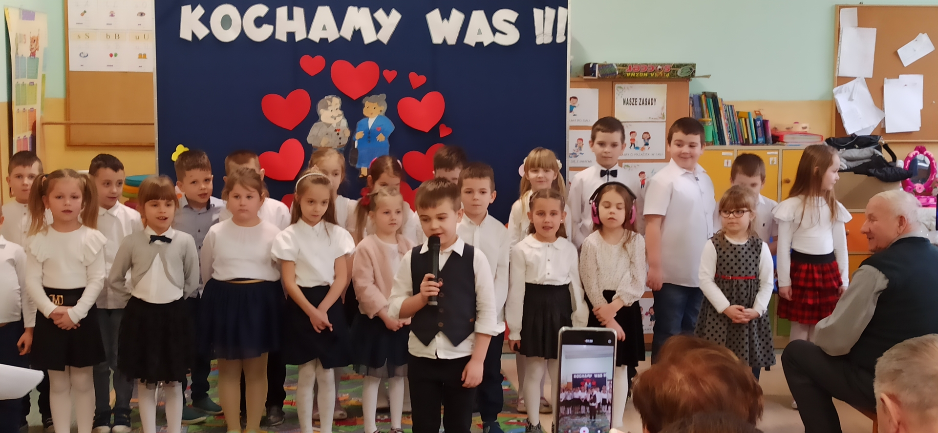 to słowa, które każdemu dziecku kojarzą się z ciepłem, miłością i wszystkim, co dobre. Dlatego 25 stycznia 2023 r. dzieci z zerówki gościły swoje Babcie oraz Dziadków na uroczystości z tej okazji. Od samego rana z niecierpliwością wyczekiwały zaproszonych gości. Dzieci zaprezentowały wiersze oraz piosenki. Po występie artystycznym na naszych gości czekał słodki poczęstunek przygotowany przez rodziców i upominki, aby w ten szczególny sposób okazać swoim bliskim szacunek i po raz kolejny podziękować im za miłość