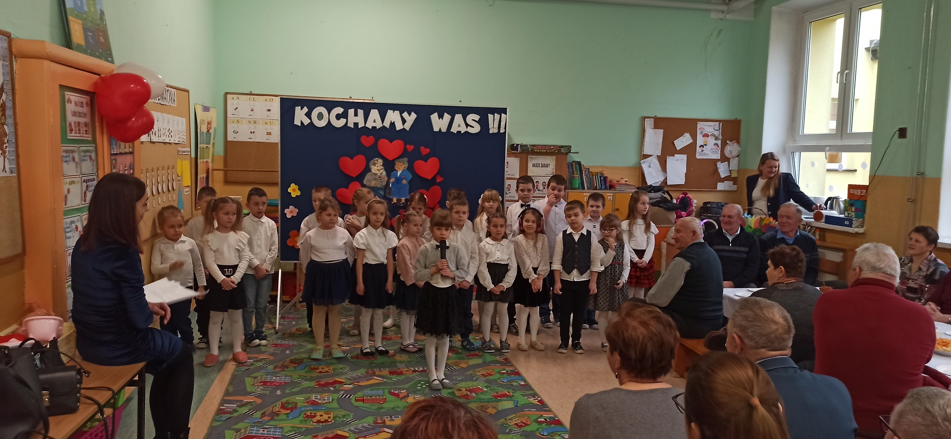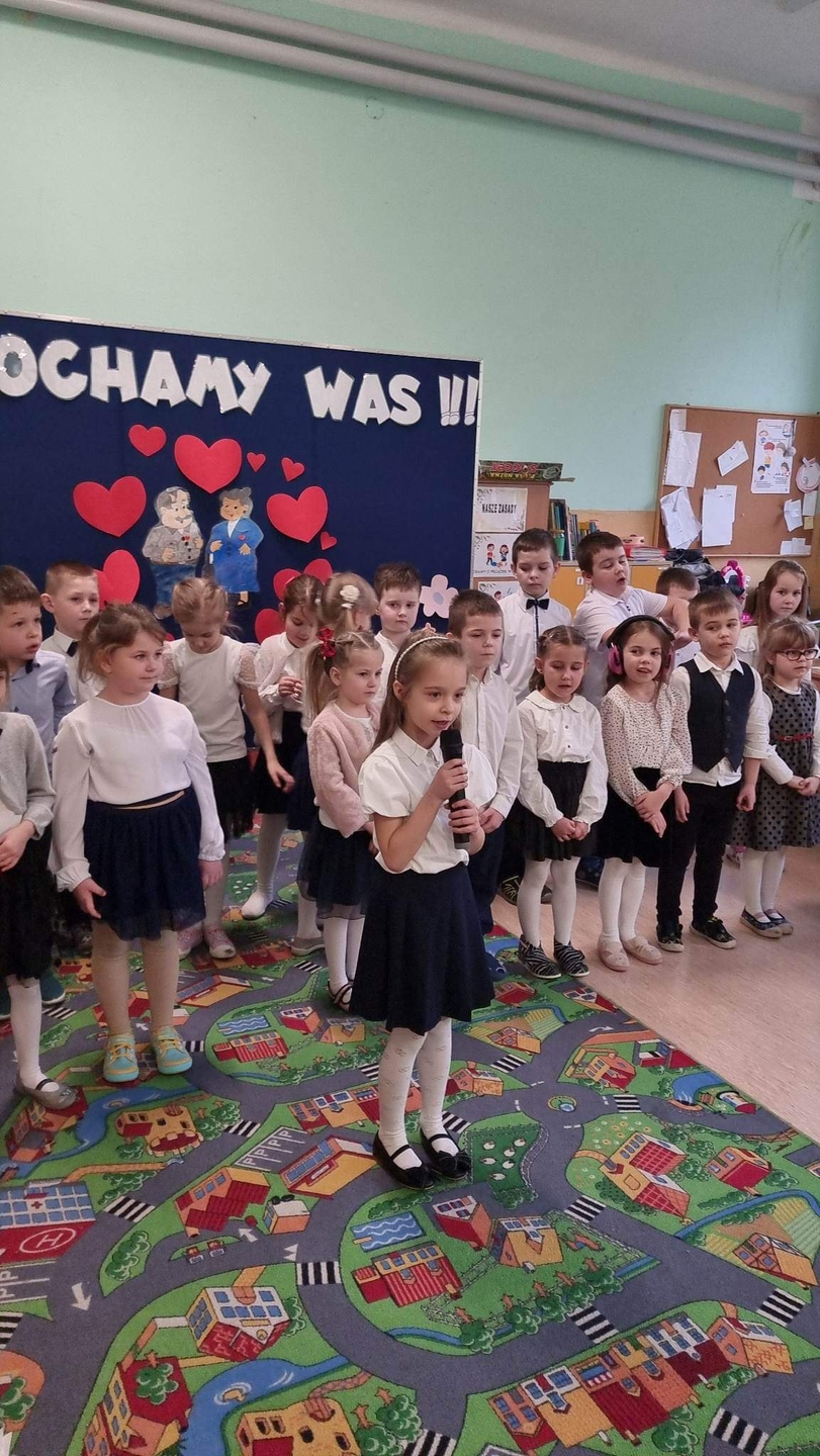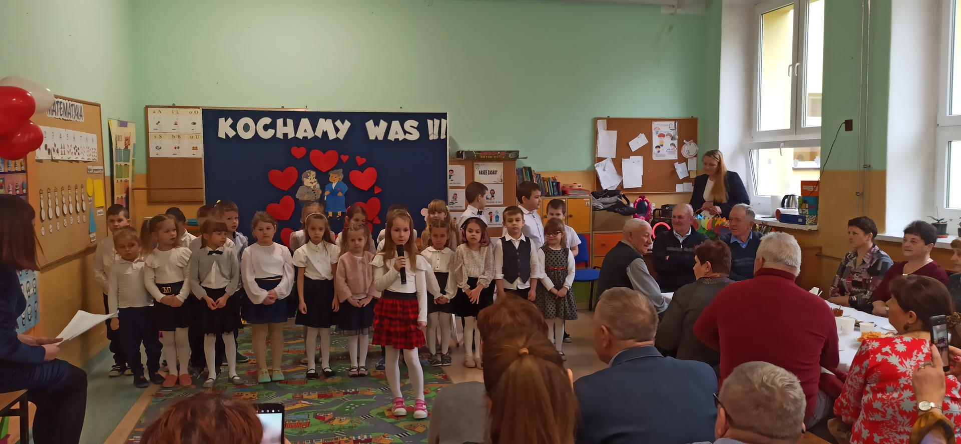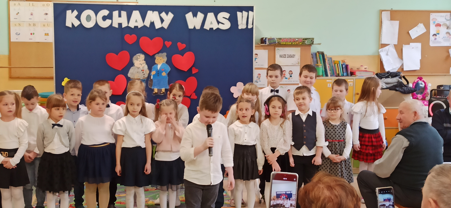 to słowa, które każdemu dziecku kojarzą się z ciepłem, miłością i wszystkim, co dobre. Dlatego 25 stycznia 2023 r. dzieci z zerówki gościły swoje Babcie oraz Dziadków na uroczystości z tej okazji. Od samego rana z niecierpliwością wyczekiwały zaproszonych gości. Dzieci zaprezentowały wiersze oraz piosenki. Po występie artystycznym na naszych gości czekał słodki poczęstunek przygotowany przez rodziców i upominki, aby w ten szczególny sposób okazać swoim bliskim szacunek i po raz kolejny podziękować im za miłość