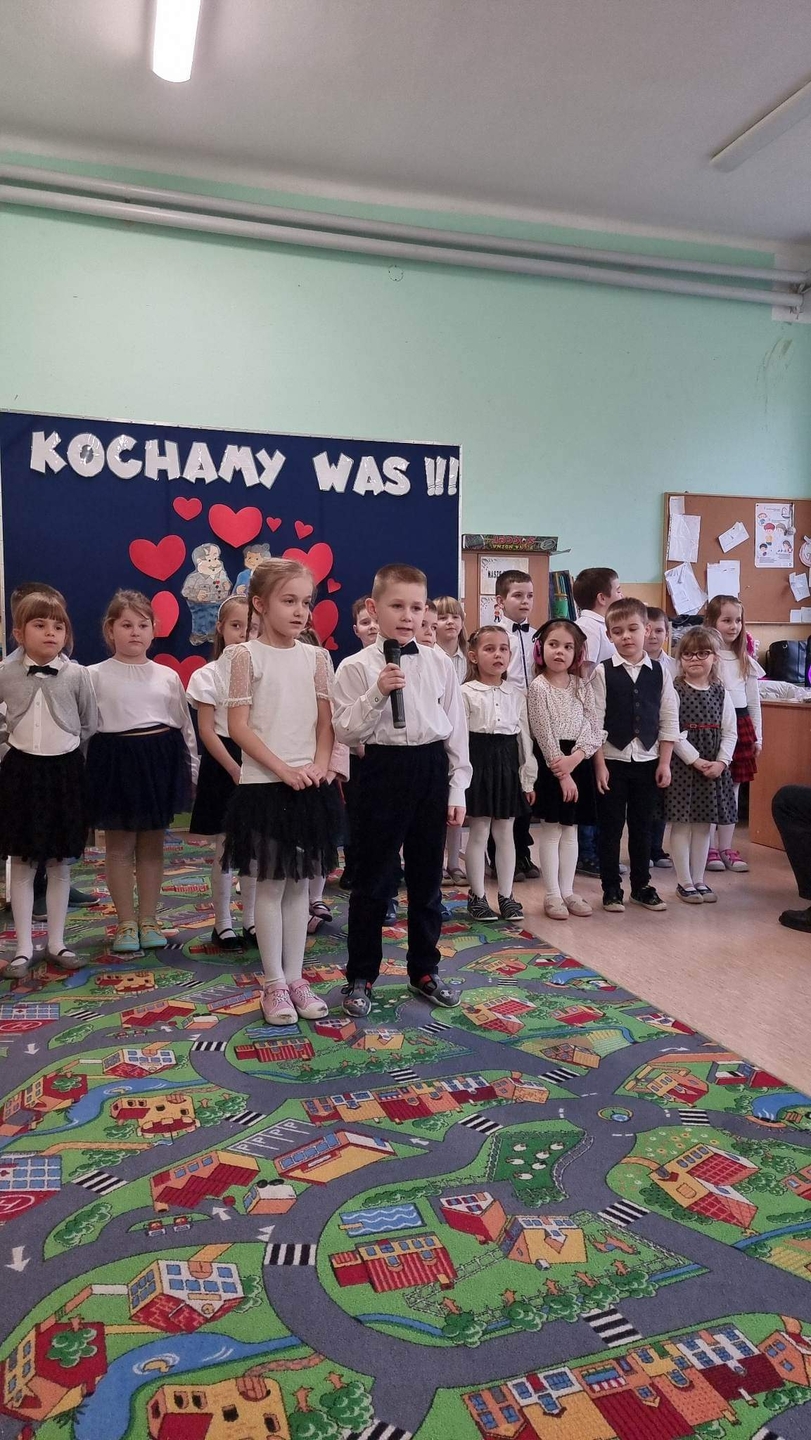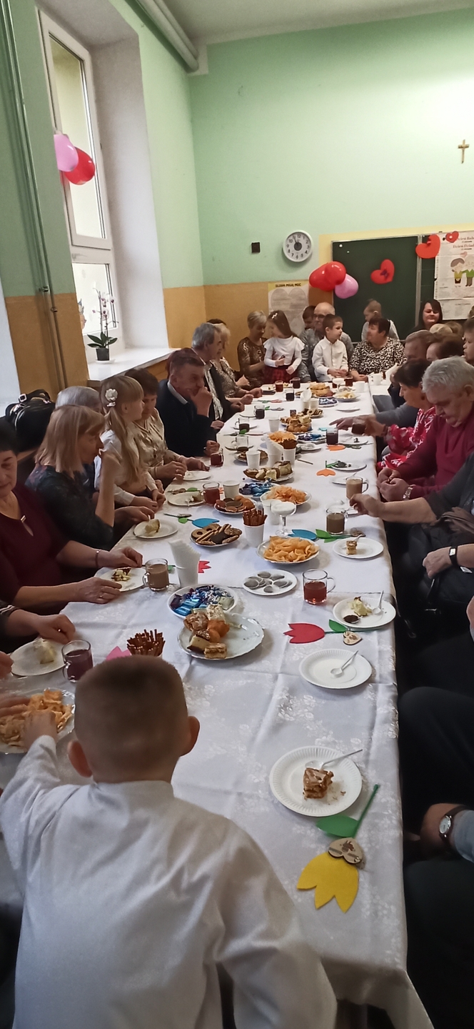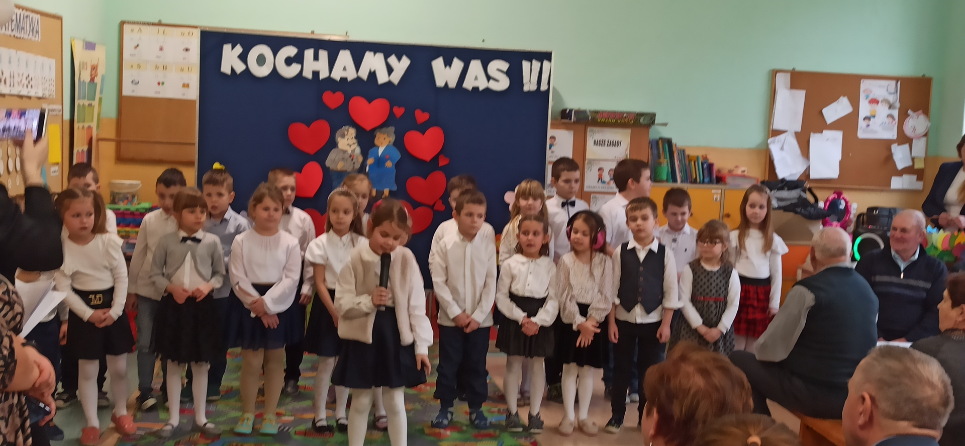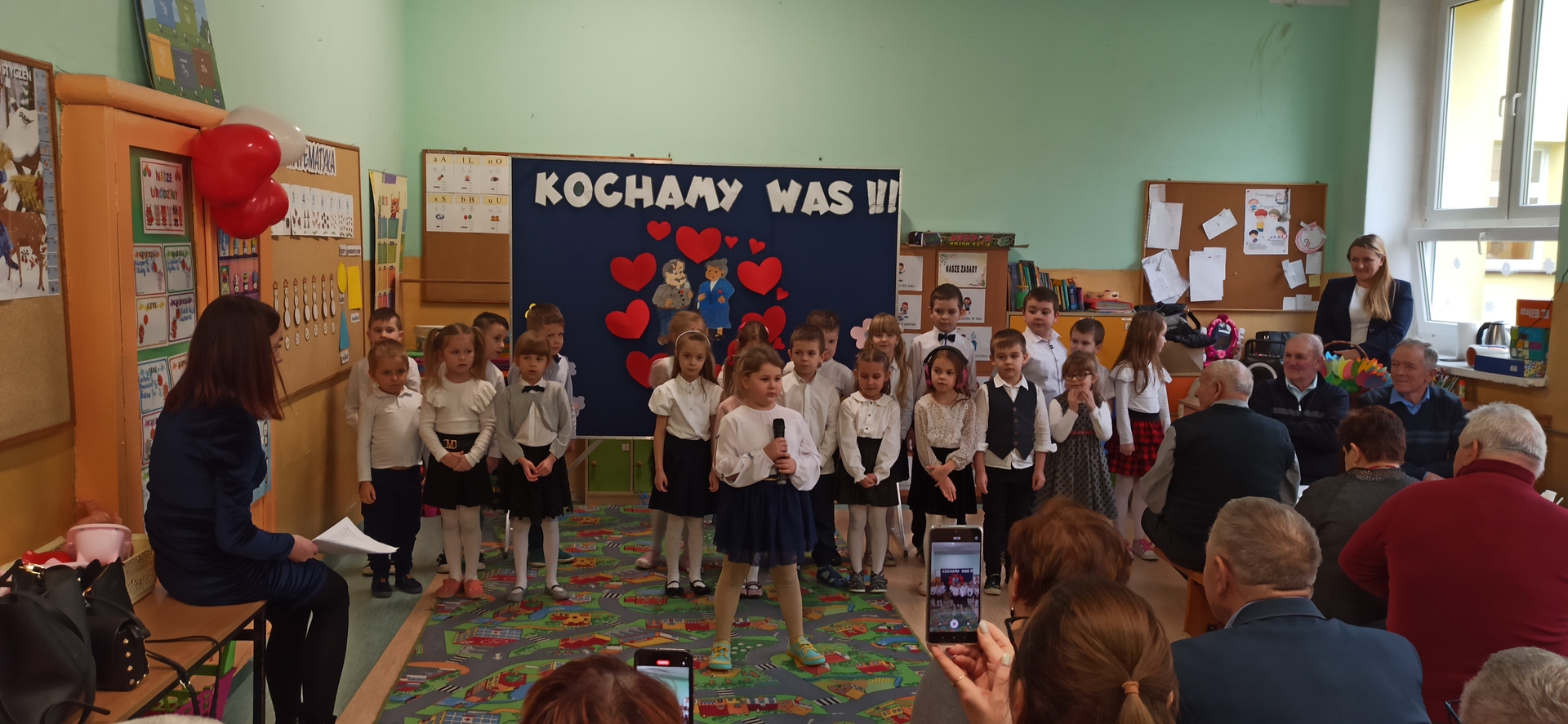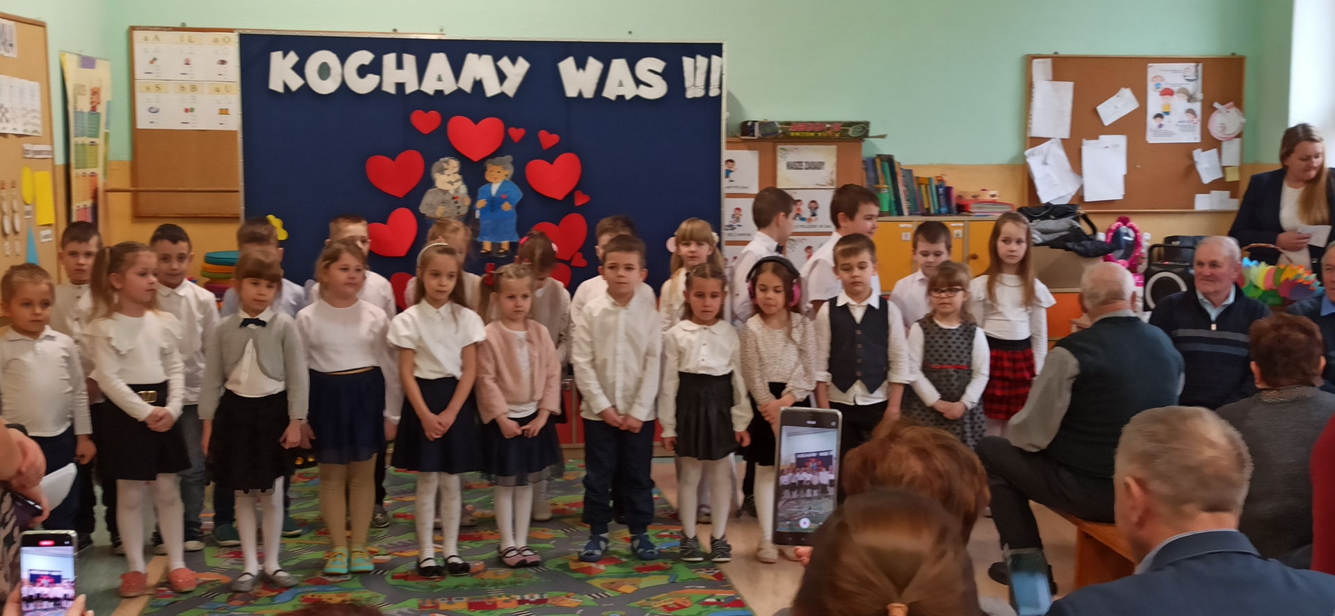 to słowa, które każdemu dziecku kojarzą się z ciepłem, miłością i wszystkim, co dobre. Dlatego 25 stycznia 2023 r. dzieci z zerówki gościły swoje Babcie oraz Dziadków na uroczystości z tej okazji. Od samego rana z niecierpliwością wyczekiwały zaproszonych gości. Dzieci zaprezentowały wiersze oraz piosenki. Po występie artystycznym na naszych gości czekał słodki poczęstunek przygotowany przez rodziców i upominki, aby w ten szczególny sposób okazać swoim bliskim szacunek i po raz kolejny podziękować im za miłość
