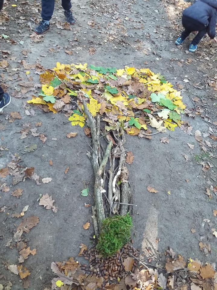, a także doskonale sobie poradziły z zadaniem ułożenia drzew z darów jesiennych znalezionych w lesie!