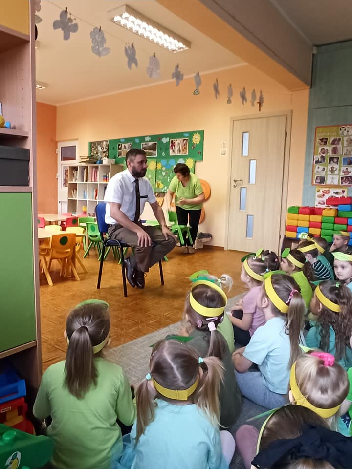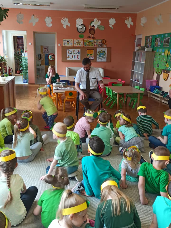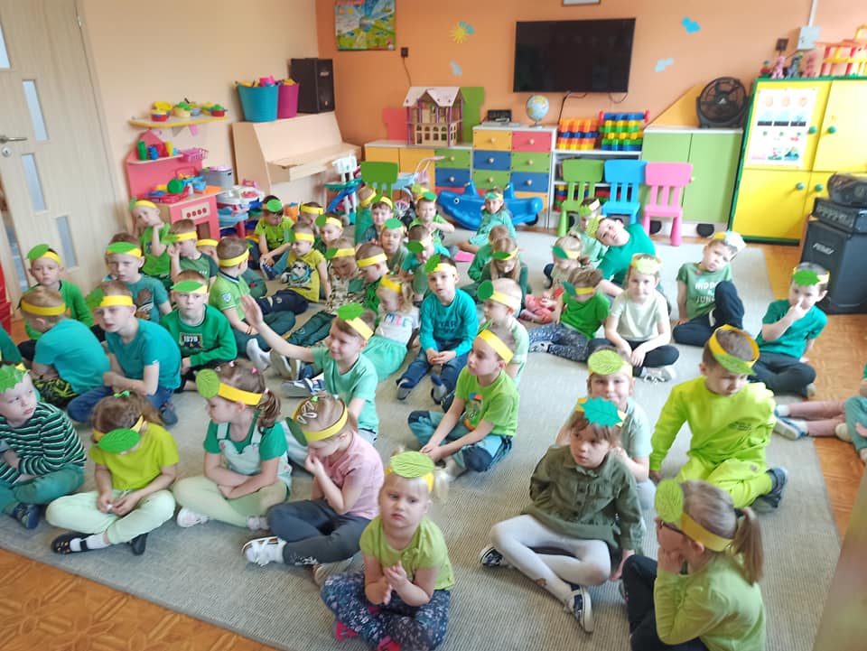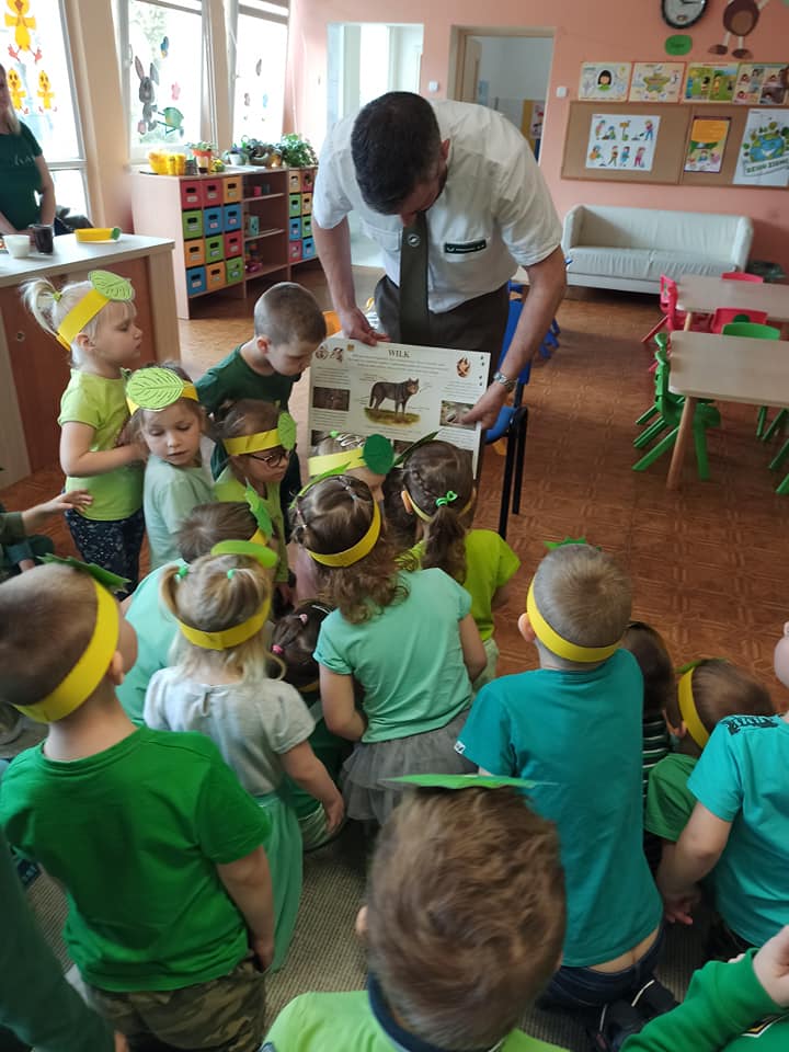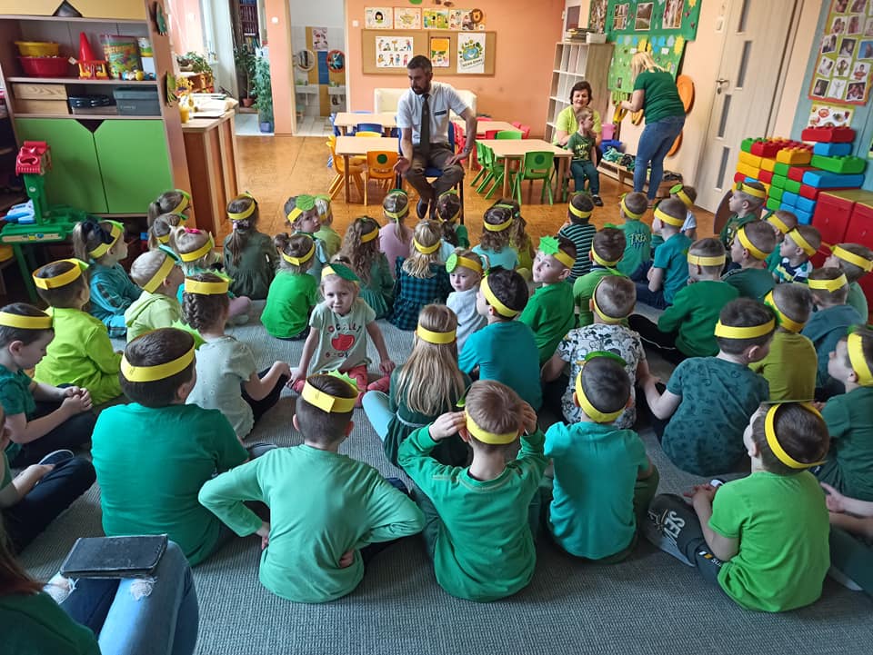 22 kwietnia przedszkolaki obchodziły Dzień Ziemi. Na spotkanie i obchody święta do przedszkola zaproszony został leśnik z Nadleśnictwo Turek - Lasy Państwowe pan Szymon Wasiak. Dzień Ziemi w przedszkolu był okazją, aby porozmawiać z dziećmi na podstawowe tematy związane z ochroną środowiska. Zebrane w jednej sali przedszkolaki słuchały m.in. o segregowaniu śmieci i niewyrzucaniu ich do lasu, o oszczędzaniu wody oraz o ochronie zwierząt i roślin.