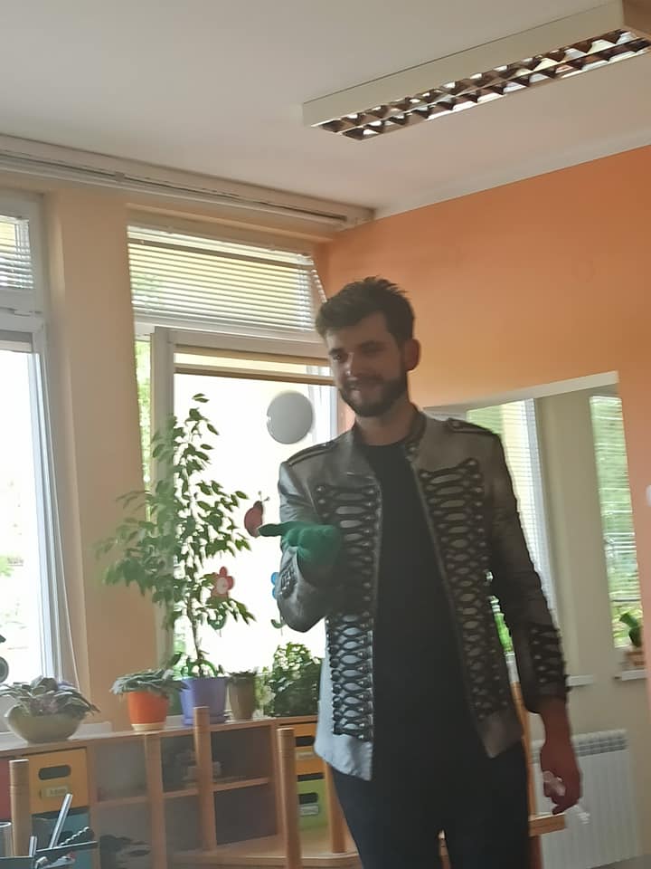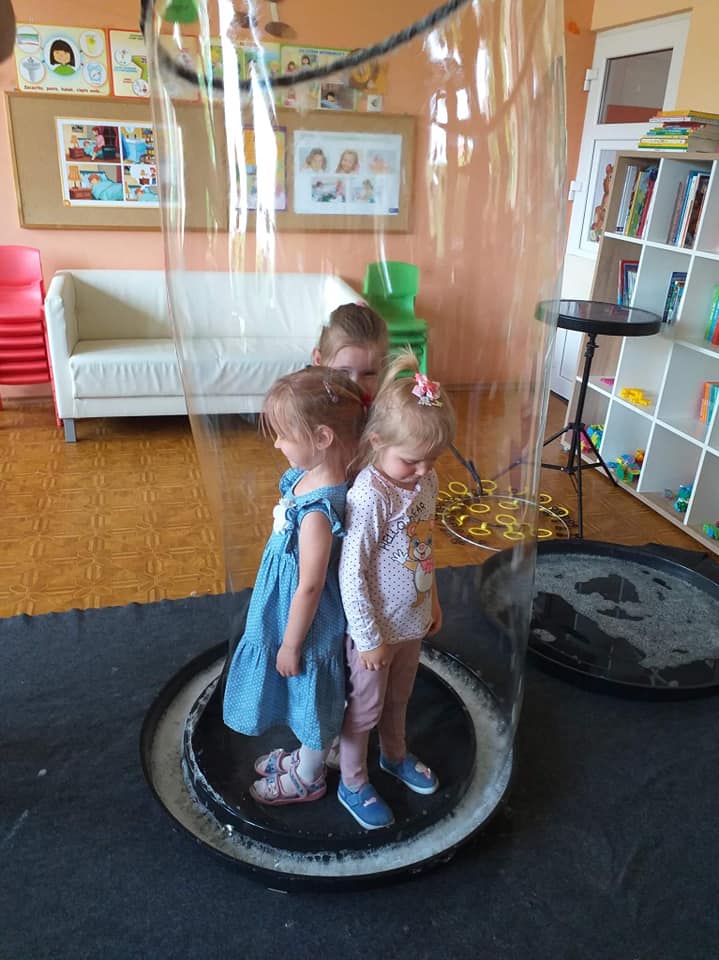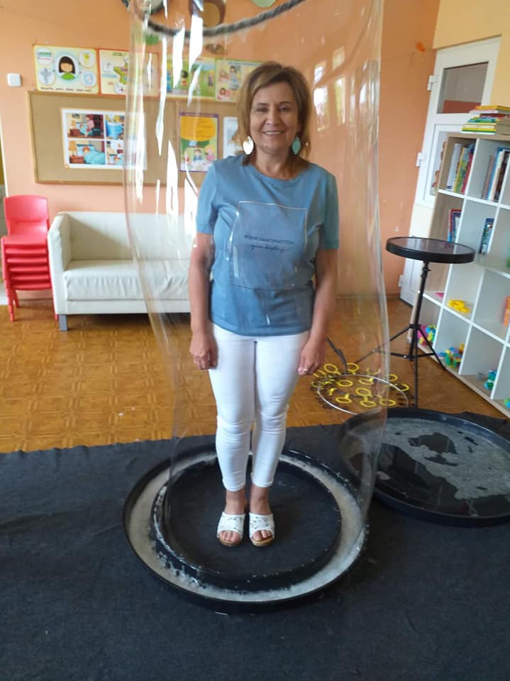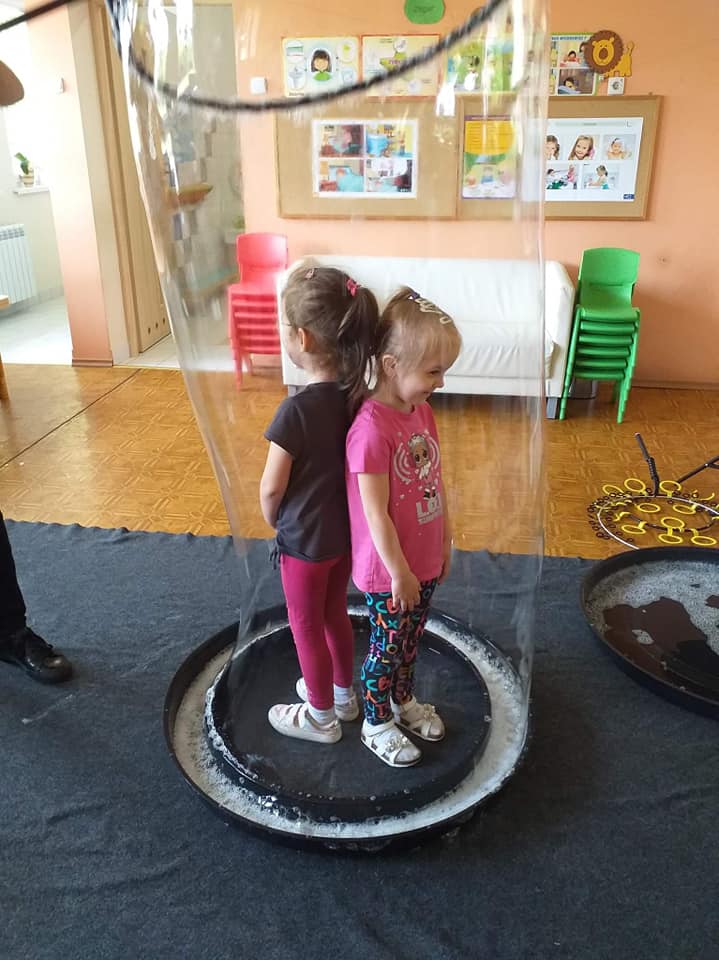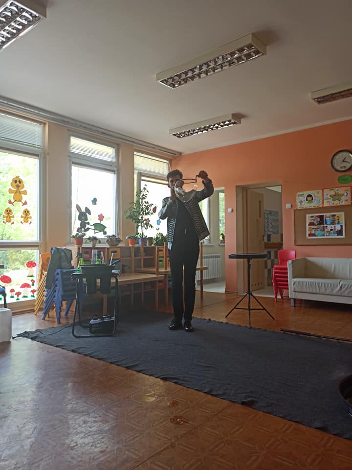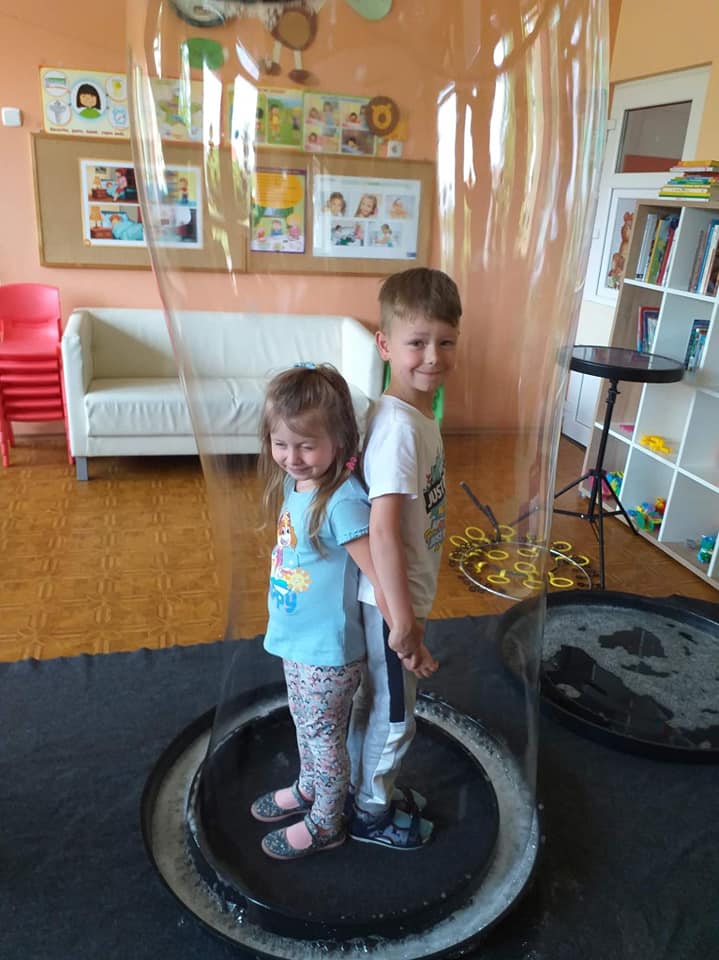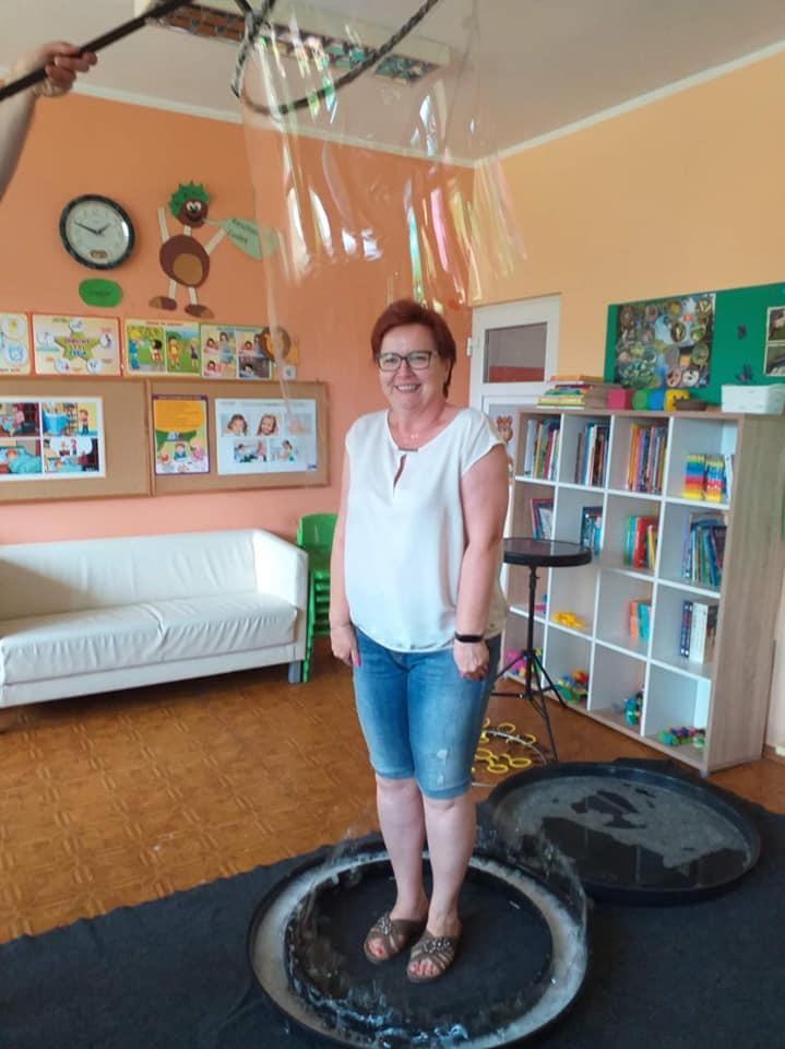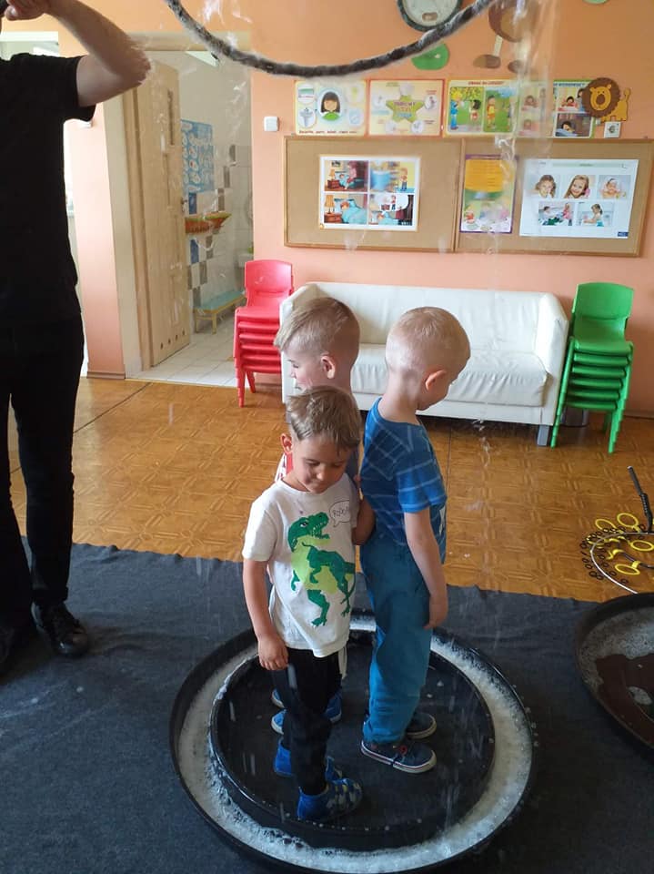 W poniedziałek 16 maja 2022 r. w naszym przedszkolu gościł Arkadiusz Gwizdała, uczestnik programu telewizyjnego ,,Mam talent ”, który przeniósł wszystkich w magiczny świat baniek mydlanych.