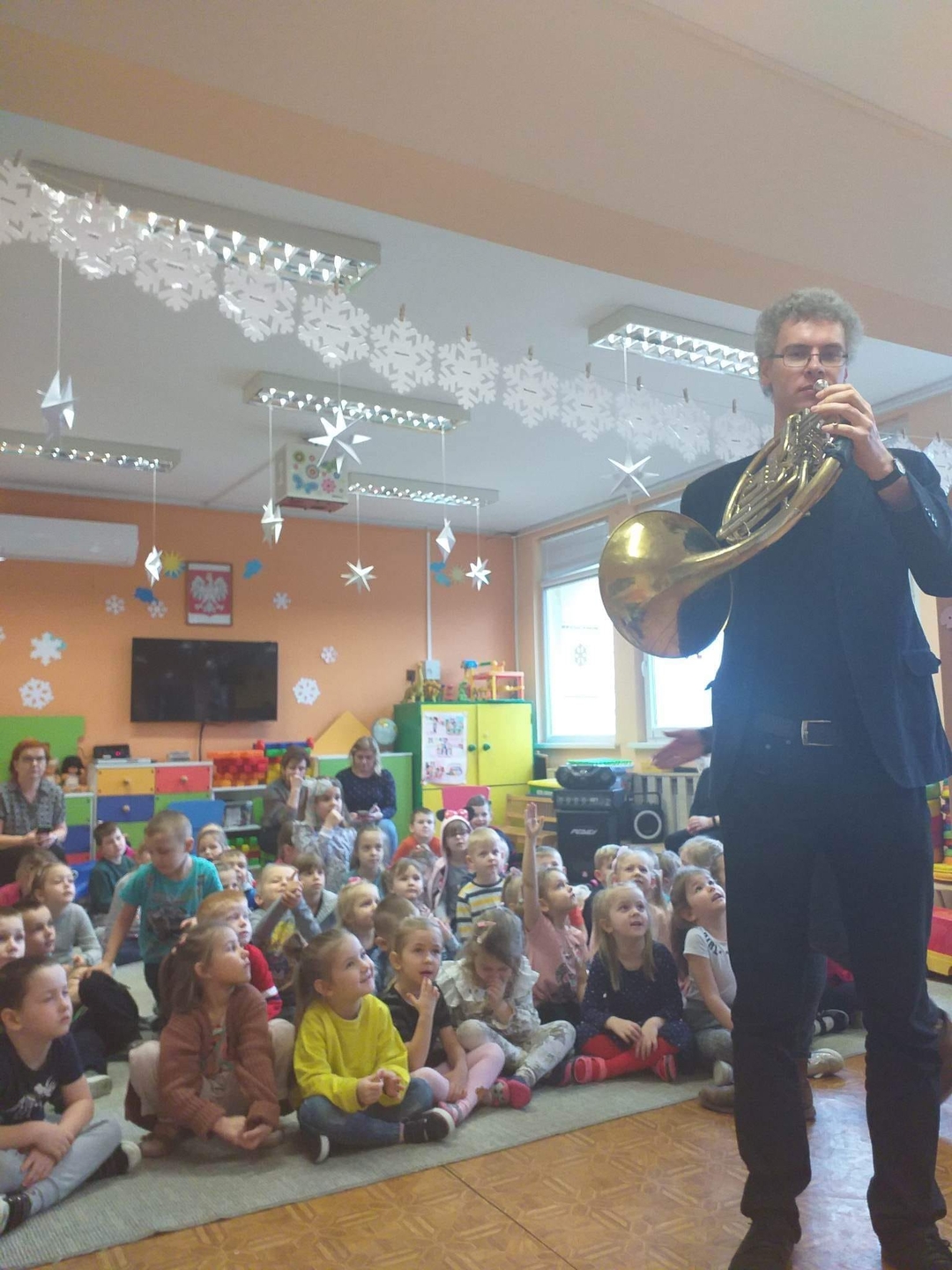19.01.2023 r. odbyło się kolejne spotkanie z Akademia pana Feliksa, tym razem pod hasłem "Muzyczne frazy z filmowej bazy". Pan Bartek zademonstrował na trąbce pocztowej "początek i koniec polowania" oraz różne melodie ze znanych filmów. Tego dnia dzieci jak zwykle dobrze się bawiły.