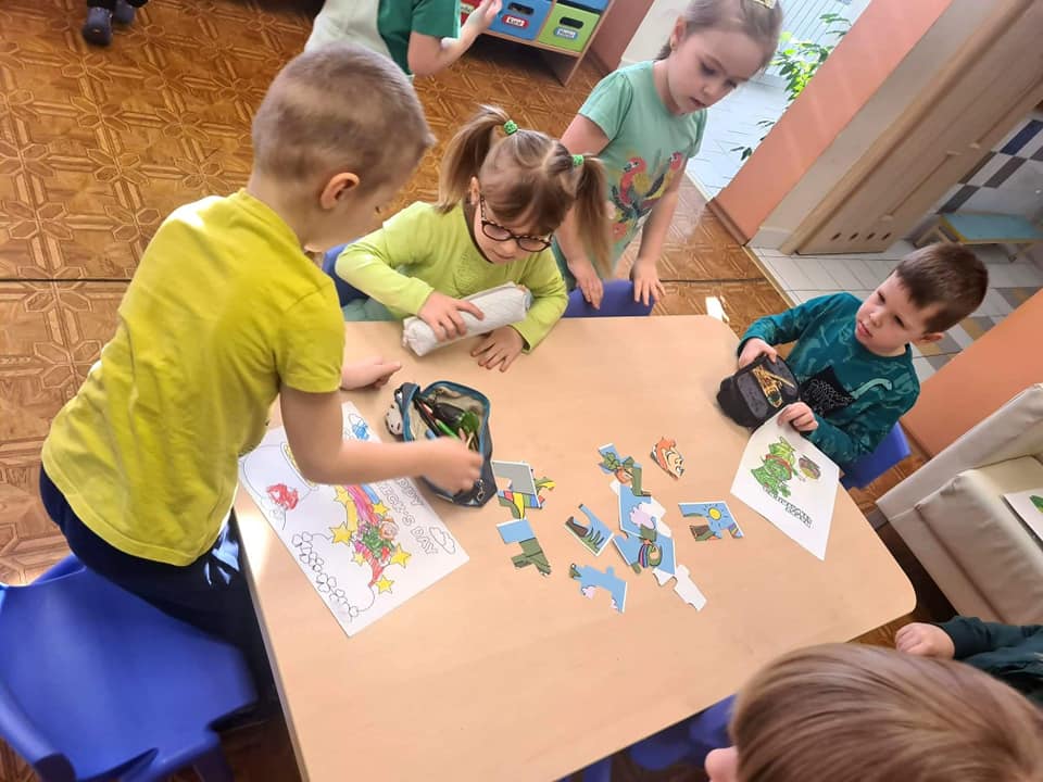 Po przeprowadzonych prezentacjach i pogadankach przedszkolaki miały możliwość wykorzystania zdobytych informacji w różnorodnych zadaniach, zabawach oraz quizach językowych.