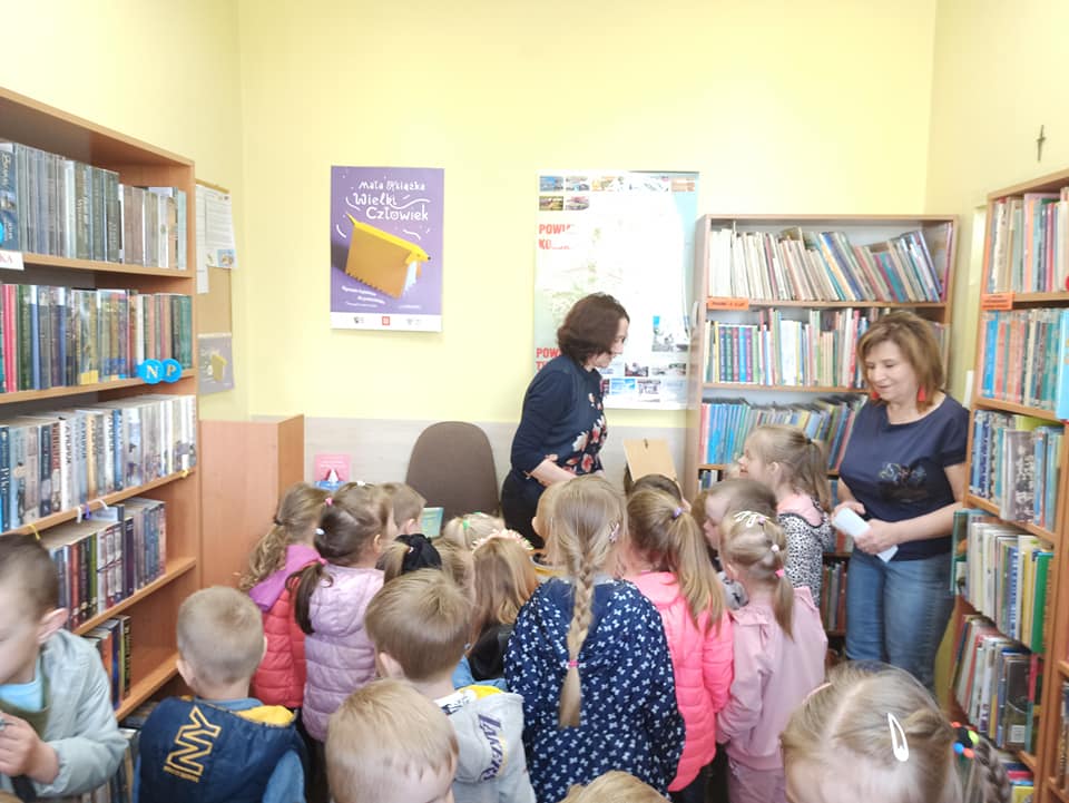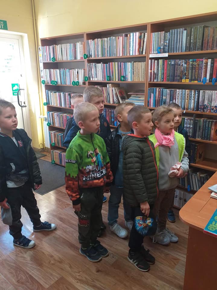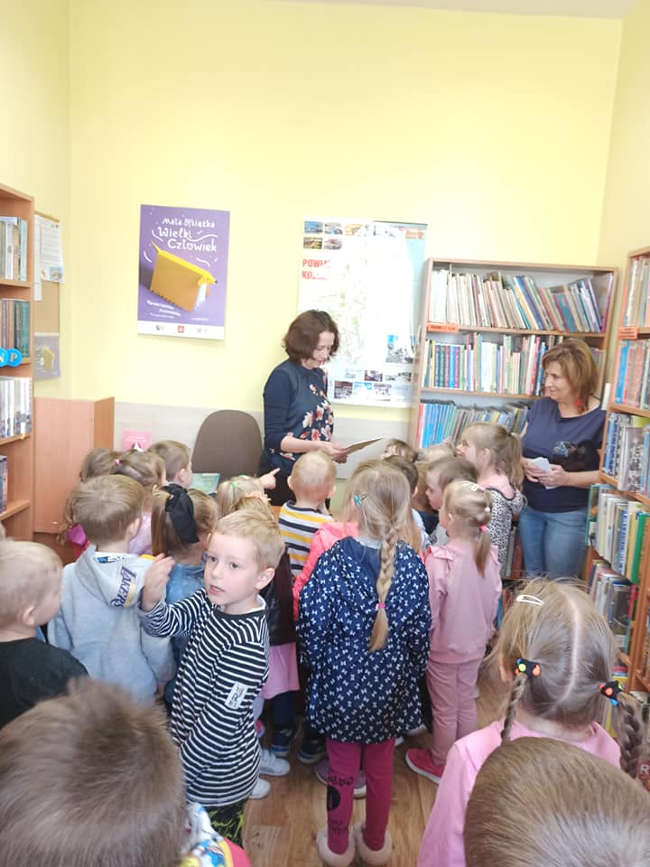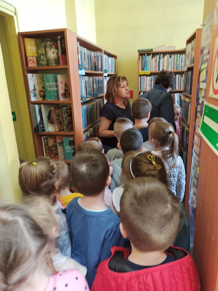 Pani bibliotekarka Elżbieta Kalinowska przybliżyła dzieciom pracę bibliotekarza oraz opowiedziała jak można zostać czytelnikiem biblioteki. ?????