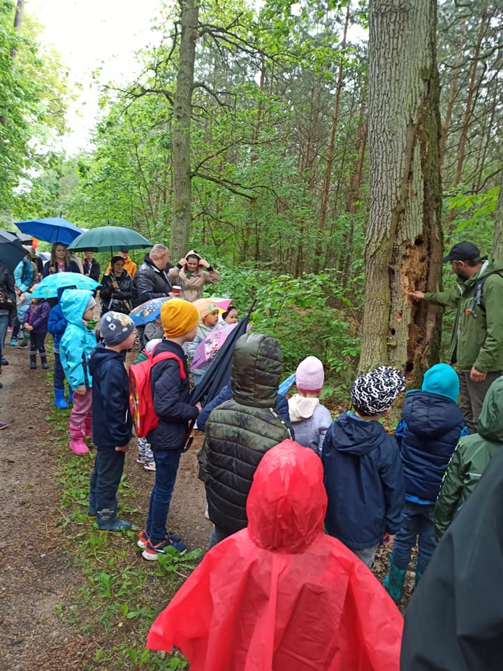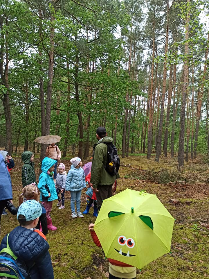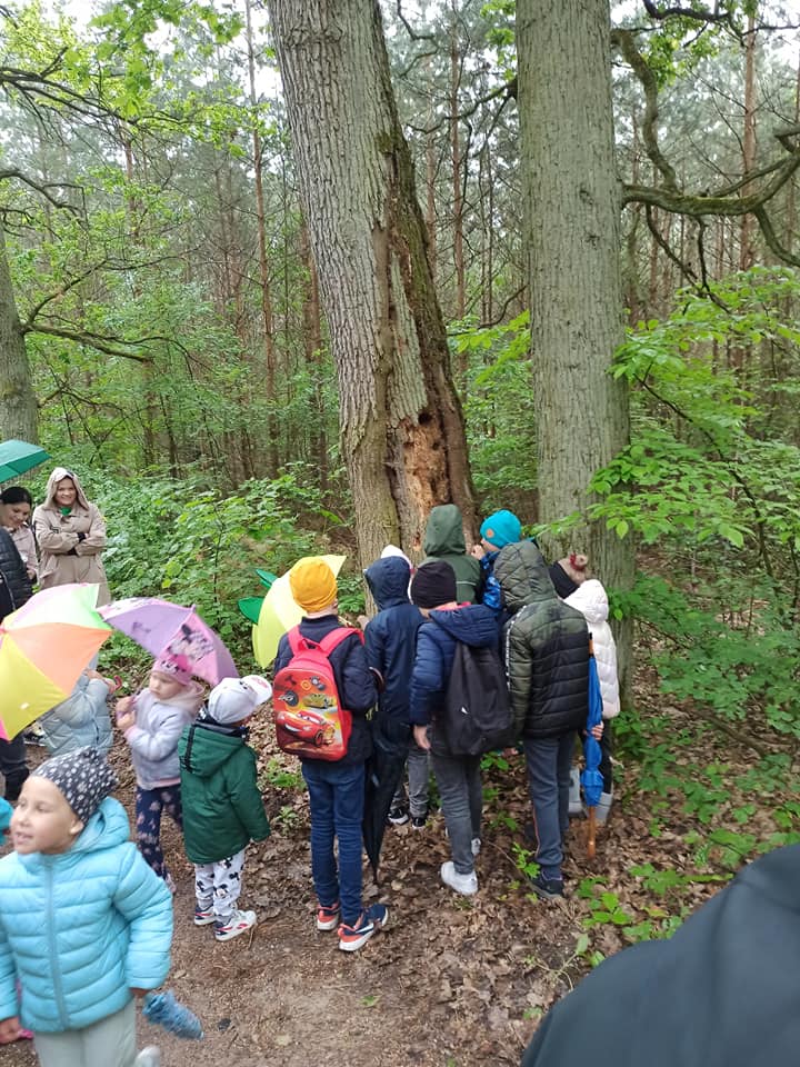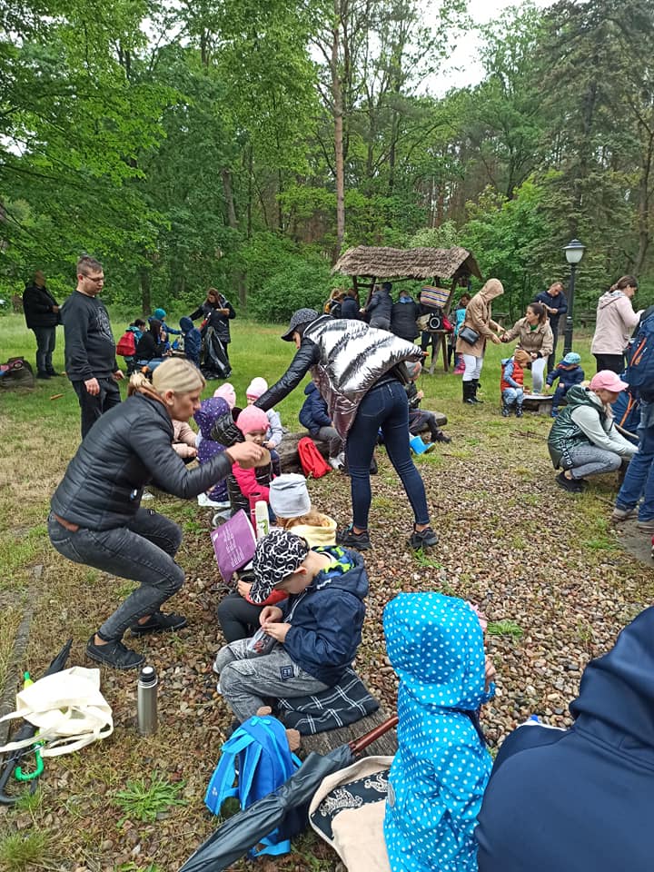 27 maja 2022 r. udaliśmy się wspólnie z rodzicami do Nadleśnictwa Linne. Przewodnikiem naszym był pan Szymon Wasiak z Nadleśnictwo Turek - Lasy Państwowe. Opowiadał bardzo ciekawie o otaczającej nas przyrodzie. Dowiedzieliśmy się dlaczego niektóre drzewa w lesie są wycinane i zobaczyliśmy jak wyglądają rośliny zaatakowane przez szkodniki. Kolejnym punktem wycieczki było wspólne ognisko i pieczenie kiełbasek.