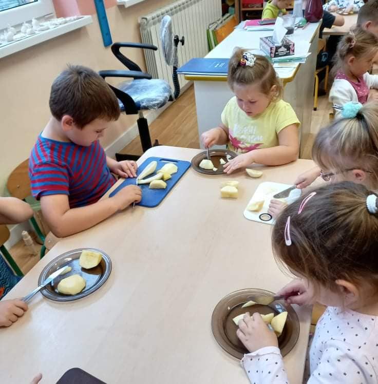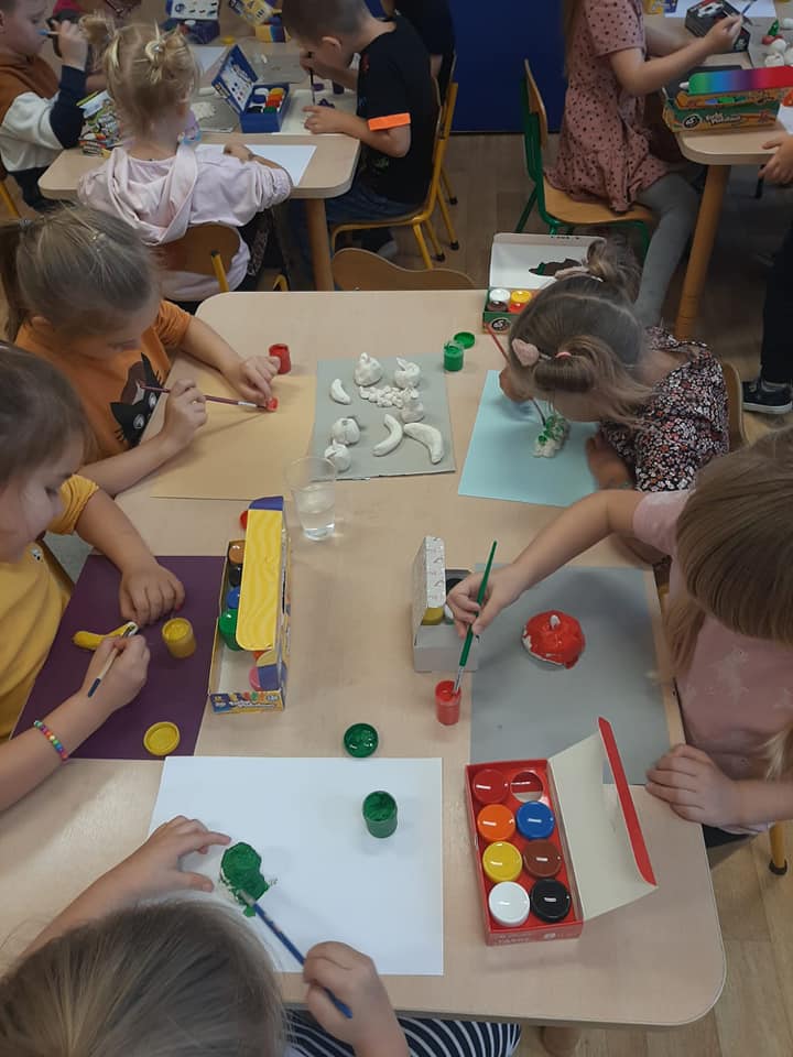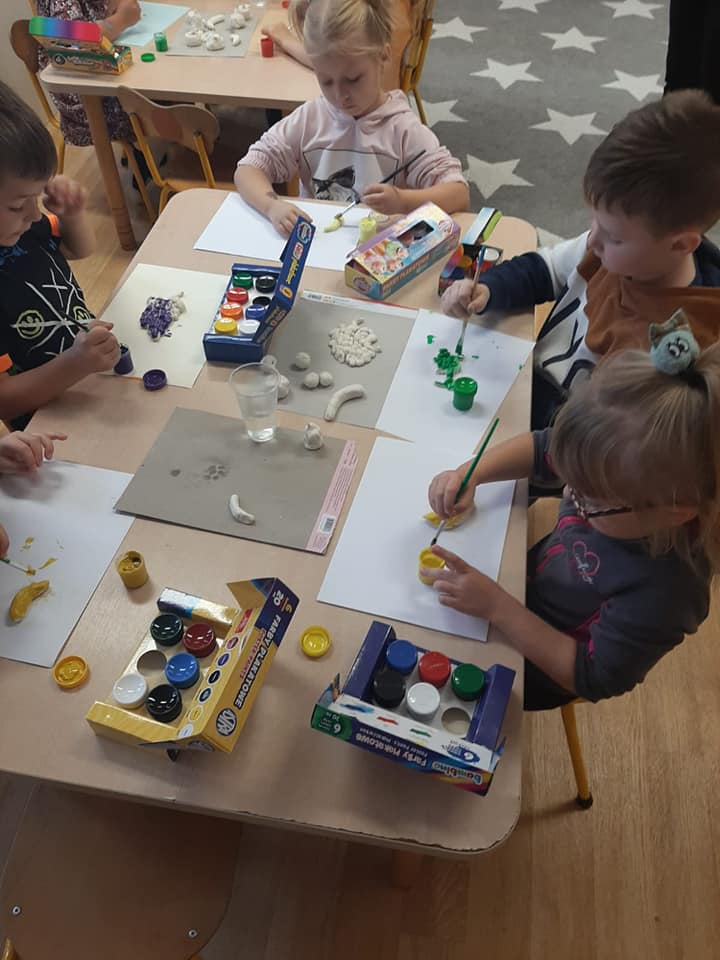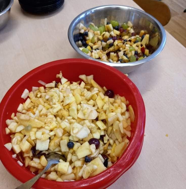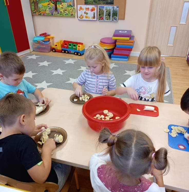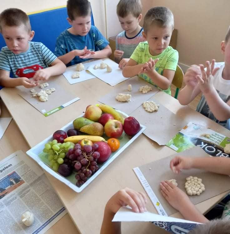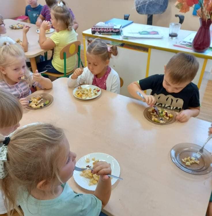 Zajęcia o tematyce owocowej: wykonanie owoców z masy solnej, malowanie ich farbami, a na koniec jeszcze smakowanie własnoręcznie zrobionej przez dzieci sałatki owocowej. ![]()