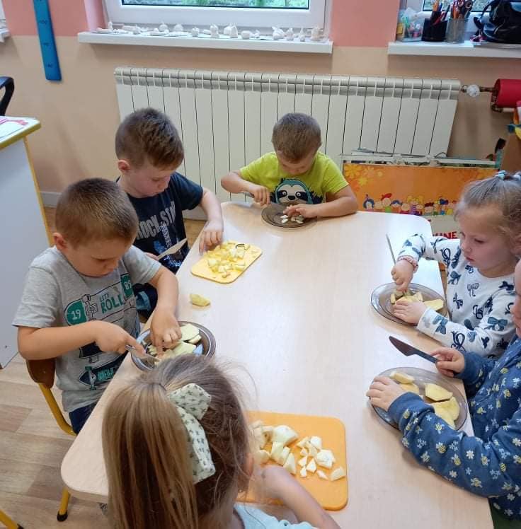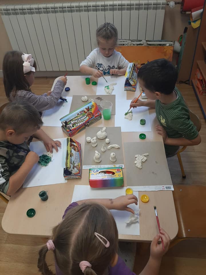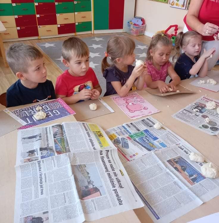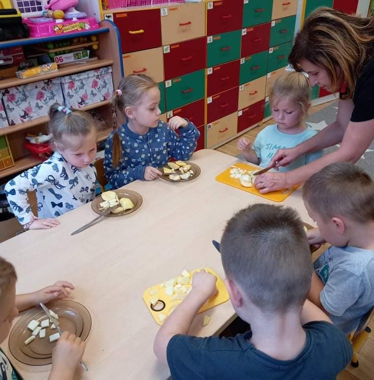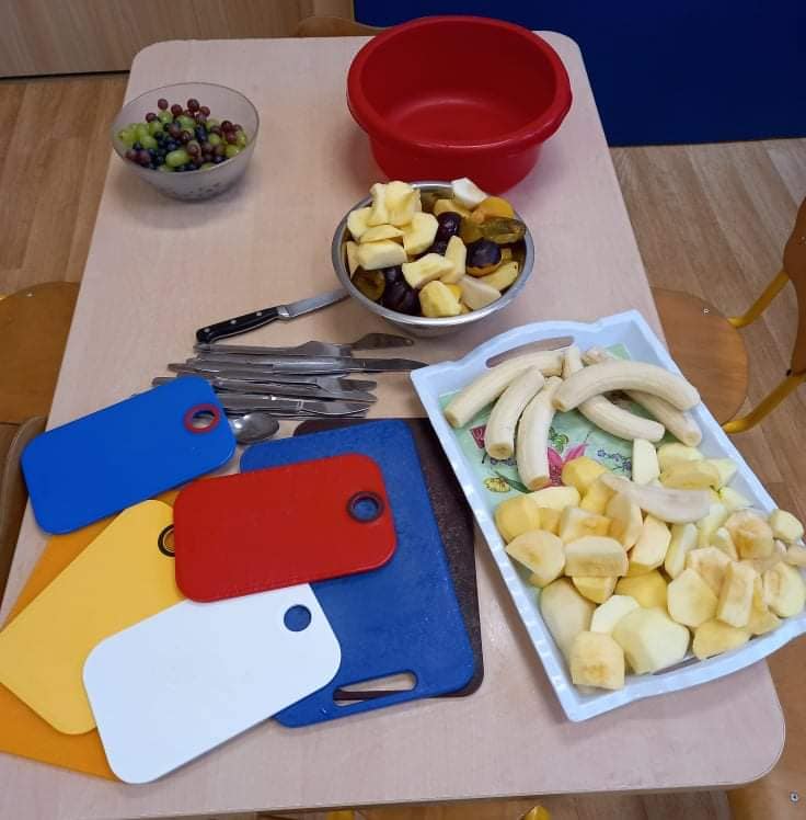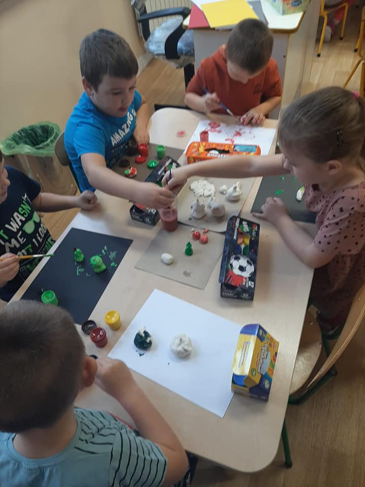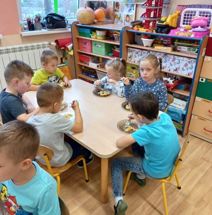 Zajęcia o tematyce owocowej: wykonanie owoców z masy solnej, malowanie ich farbami, a na koniec jeszcze smakowanie własnoręcznie zrobionej przez dzieci sałatki owocowej. ![]()
